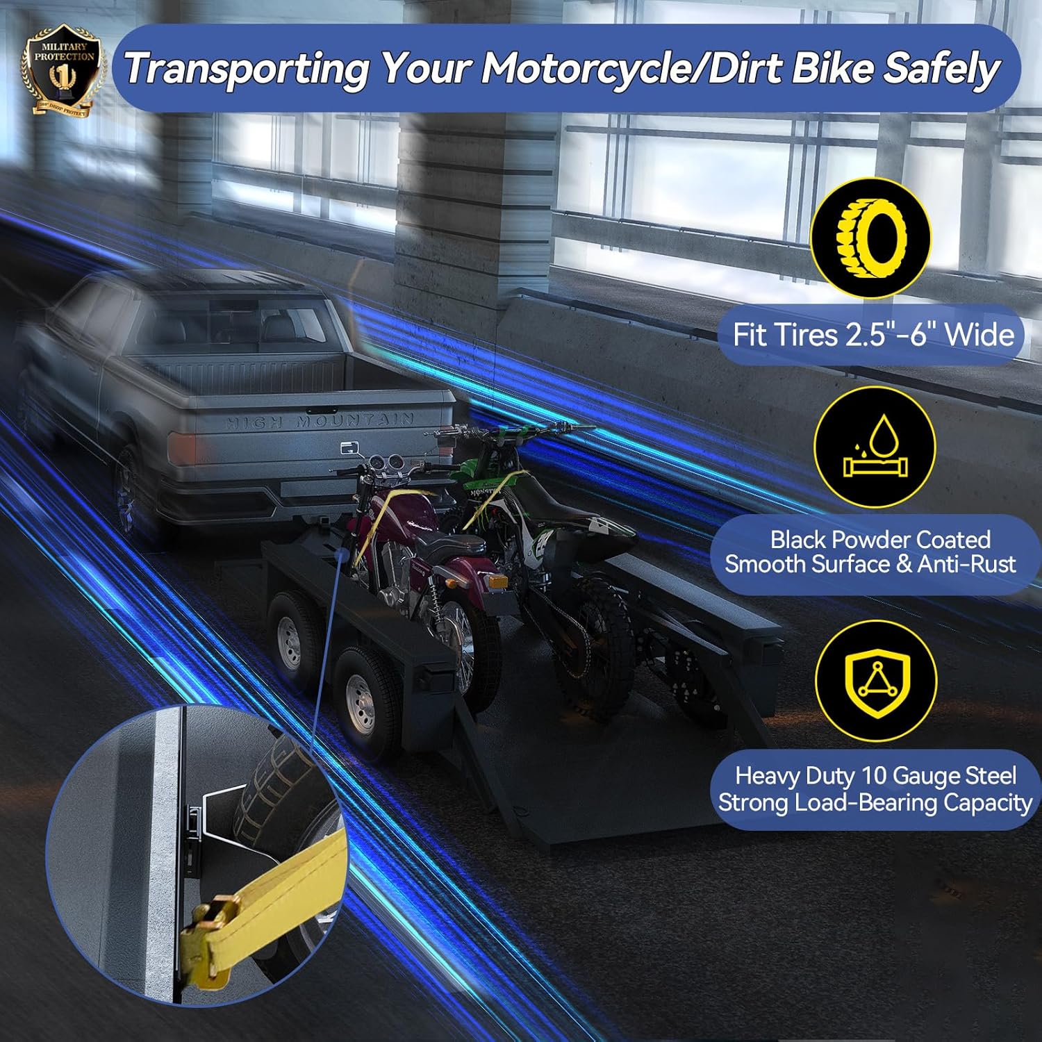- Materials and Processes : The dirt bike wheel chocks for trailer e track is made of heavy duty 10-gauge steel with an industrial grade powder coated finish, ensuring a strong load-bearing capacity that is durable and rust-resistant