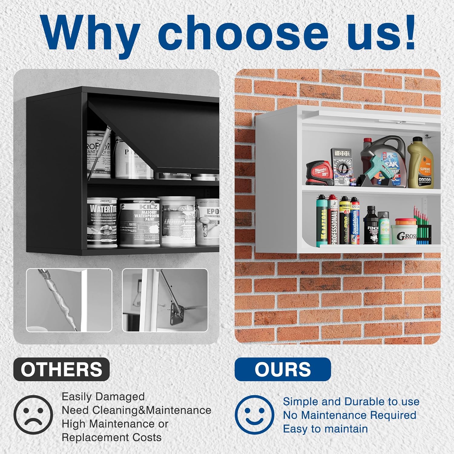 - High-quality - Our metal wall cabinet is crafted from 0.6mm thick SPCC steel plate, which compared to inexpensive wooden and plastic wall cabinets, can withstand significantly more weight. Each shelf can bear up to 120 pounds. It is the optimal choice for maximizing your storage space.