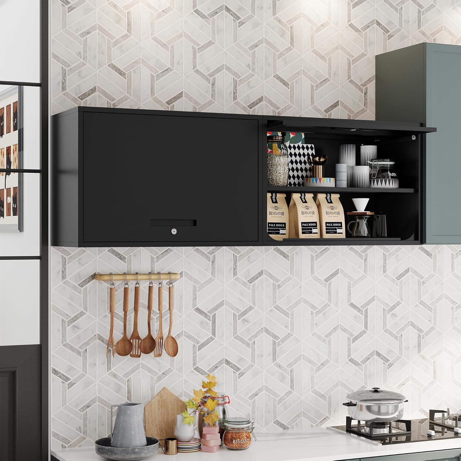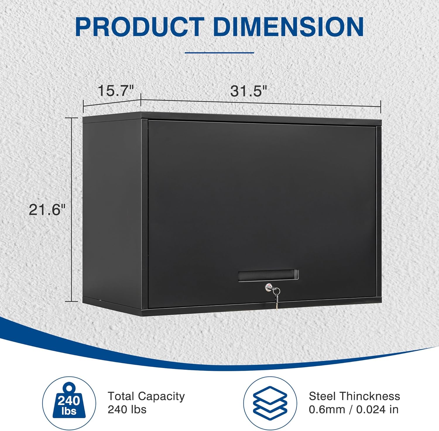 Metal Storage Cabinet Black Wall Cabinets with Shelf and Locking Door - Wall Mounted Storage Cabinet for Garage Warehouse Home Office - Assembly Required
