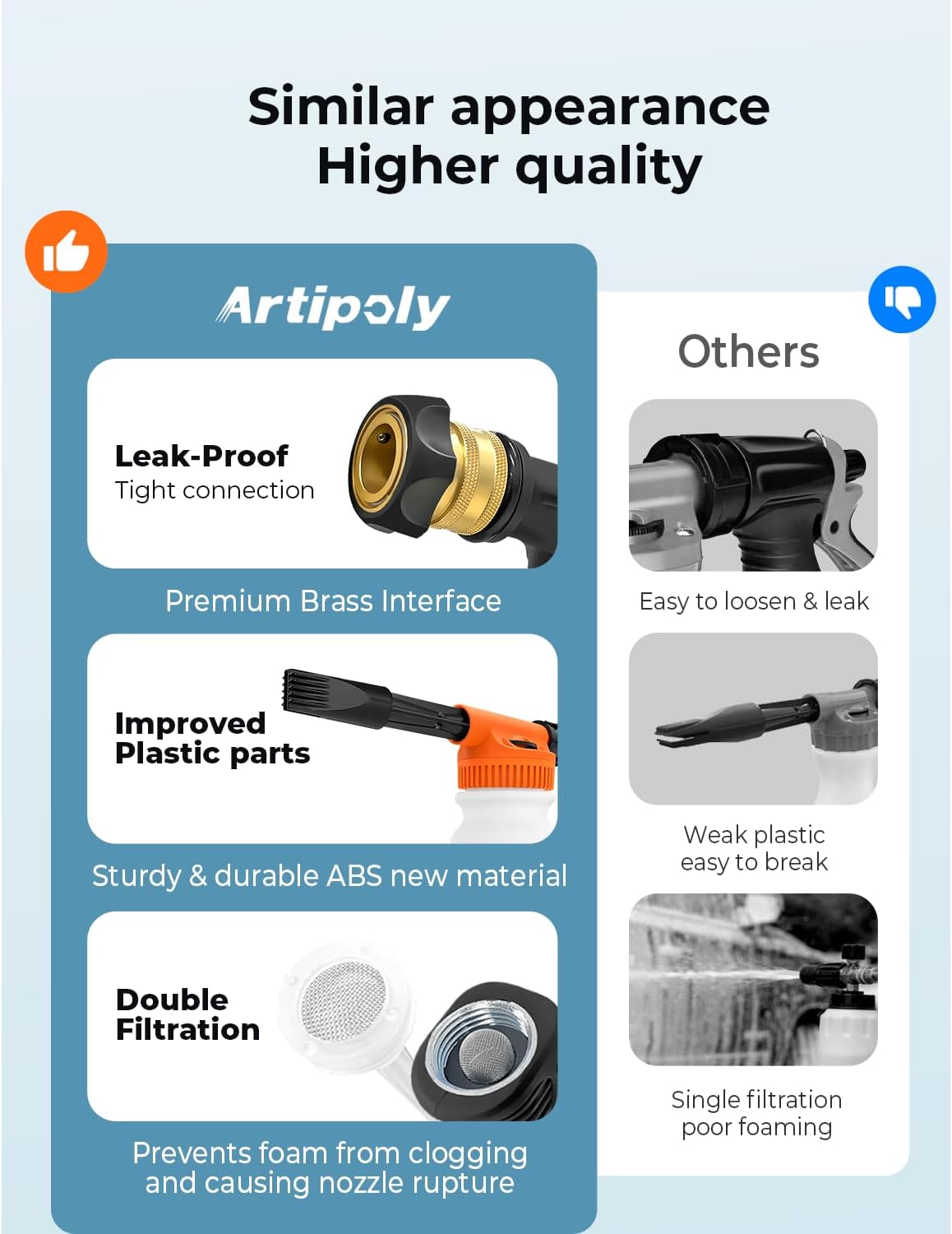 - 【Professional Grade Foam Sprayer + Microfiber Wash Mitt】 ARTIPOLY Car Wash kit enables a professional trackless car wash at home, saving you time and money.