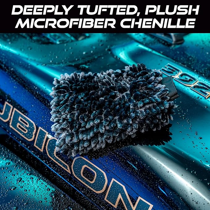 - Pack of 2 scratch free microfiber wash mitt measuring 10 inches long and 8 inches wide
