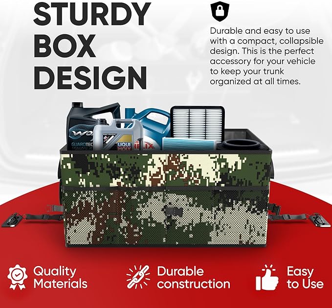 - Collapsible with Removable Lid – You can move trunk storage to the backseat, front seat, or center of your vehicle since it is collapsible to 1 compartment. The detachable lid keeps your goods out of sight for added security.