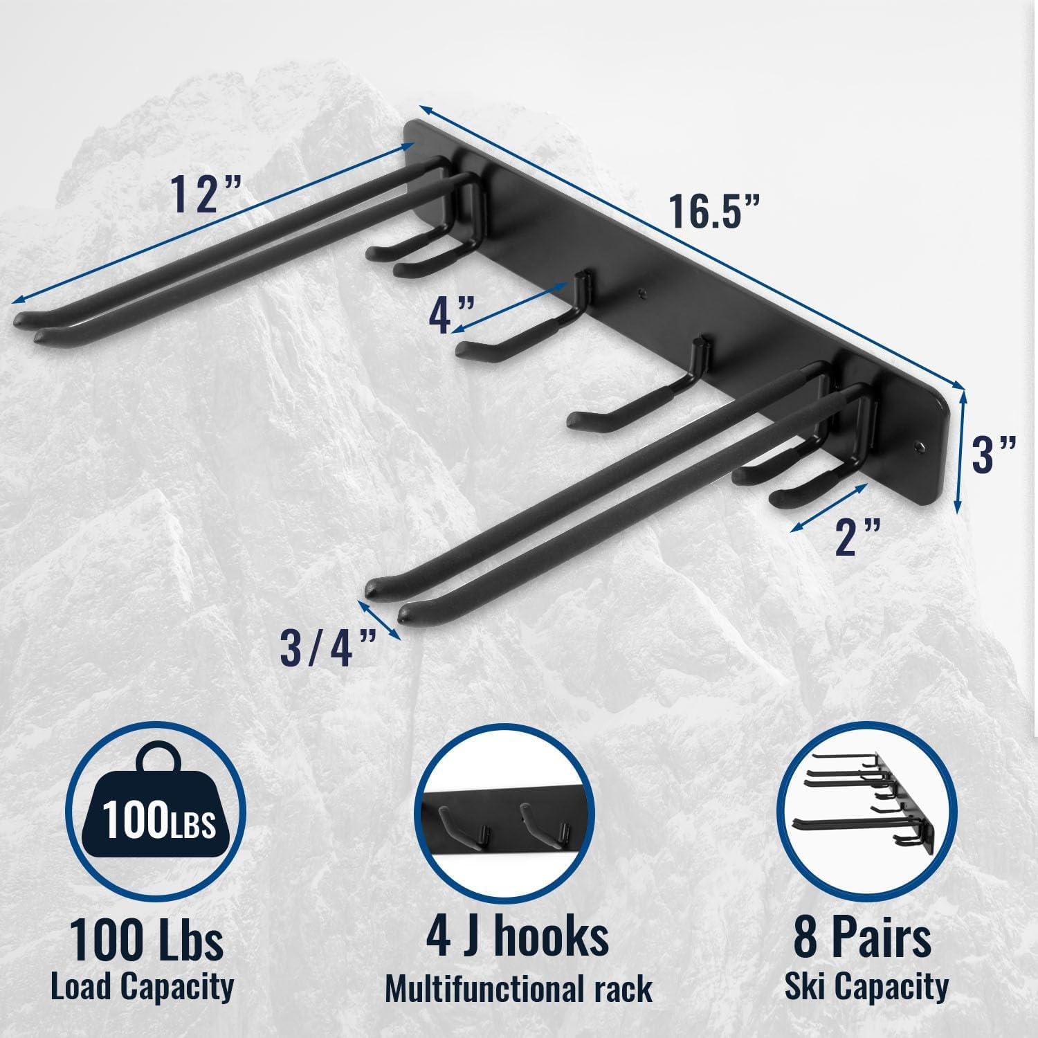 - SPACE-SAVING SKI STORAGE: Store up to 8 sets of skis, including adult, kids, and cross country skis, neatly and efficiently.