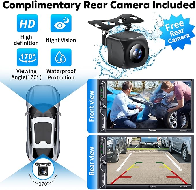 - 【HD Night Vision Backup Camera】The car radio will display the image automatically when the vehicle shifts into reverse. HD night vision backup camera is included, ultra-wide viewing angle of 170 ° and a fully waterproof design, helps to park more safely and easily