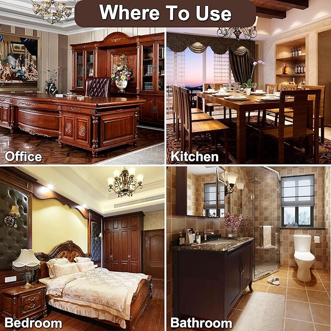 - Laminate Floor Repair Kit - The ultimate solution to fix scratches and damage on your wood floors! Furniture repair kit is suitable for various wooden surfaces, such as wooden furniture, wooden floors, wooden doors and windows, cabinets, tables, chairs, beds, bookcases, wood floors, doors and any other wood furniture and wood crafts, etc. Wood floor repair kit repairs all kinds of damage such as hole, cracks, dents, pet marks, stains, discoloration and wear and tear.