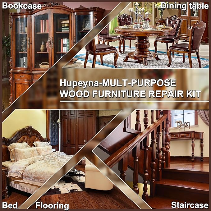 - Wood Furniture Repair Kit Easy to Apply: Test the wood filler on white paper for the desired color and compare it after it is completely dry to determine the desired color. Apply wood touch up filler to cracks, then use a tail scraper to smooth the surface, wipe off any excess filler and allow to dry. Wood floor filler can be used to repair surface scratches or to paint wood grain. For large holes or cracks, apply wood putty, let dry and then apply easy fix wood furniture repair paint to repair.