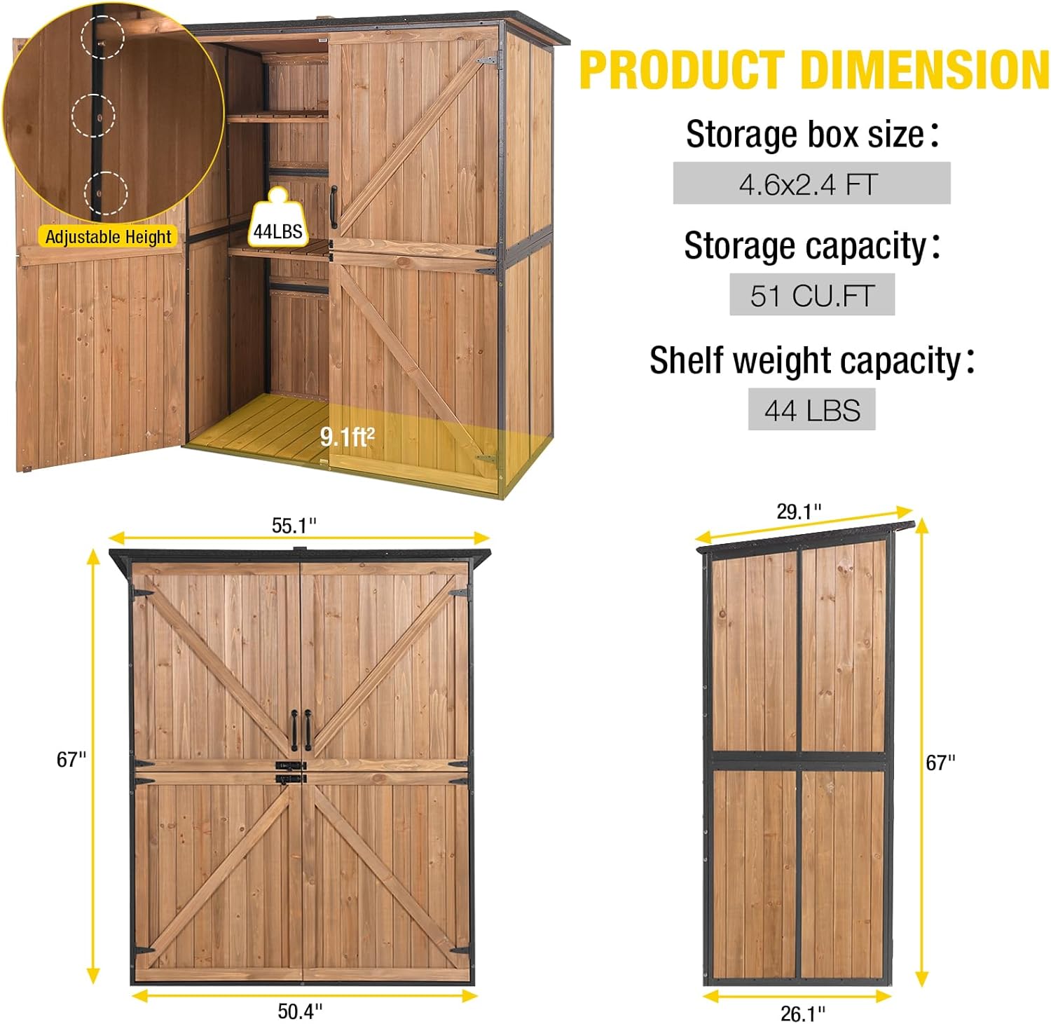 Aivituvin Outdoor Storage Shed Upgraded with Strong Metal Frame Garden Tool Shed Storage House Cabinet with Adjustable Shelfs and Wooden Floor 4.6 x 2.42FT (Brown)
