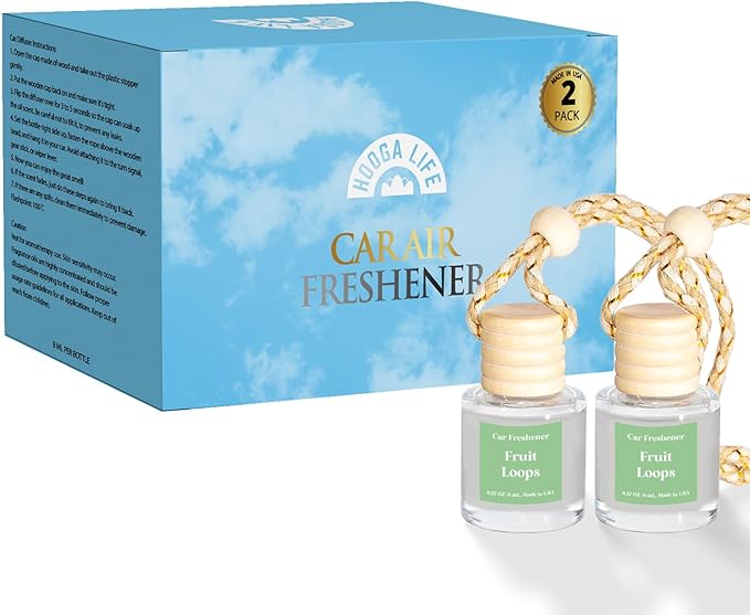 HoogaLife Car Air Freshener Diffuser 2 Pack Hanging Fruit Loops Car Air Freshener for Women 45+ days Long Lasting Fragrance Made in USA (F22)