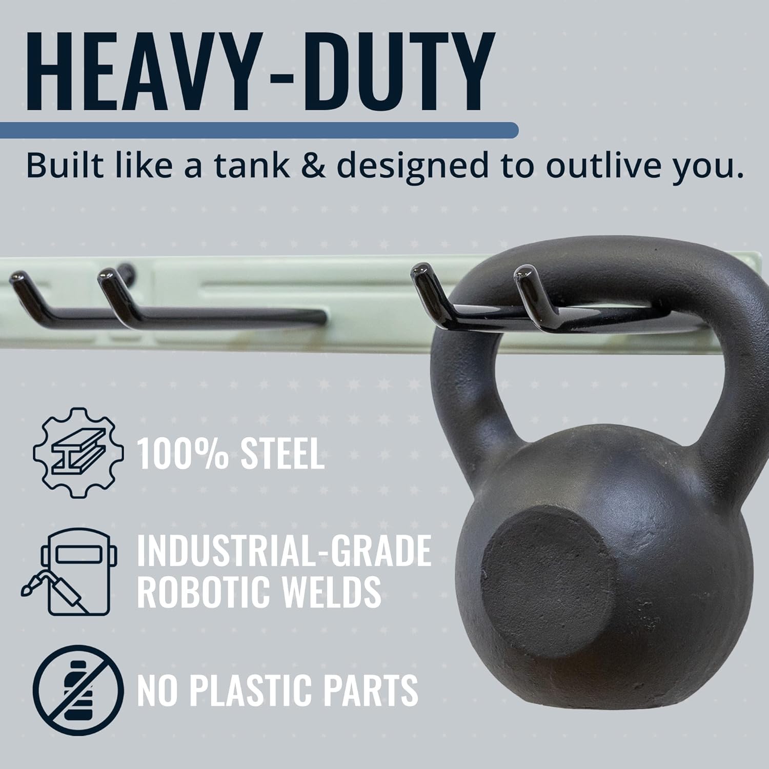 - ULTRA-STRONG & BUILT TO LAST – Made from 100% solid steel with no plastic parts or assembly required, this tool rack is crafted to withstand heavy-duty use. Each wall-mounted storage rack arrives fully welded and powder-coated to resist rust and corrosion. Perfect for organizing tools, outdoor storage gear, or even a fishing pole rack for the garage.