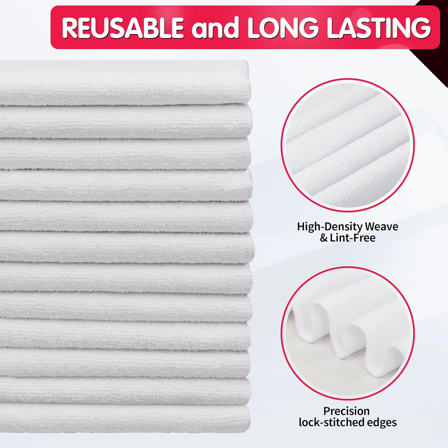 FIXSMITH White Microfiber Cleaning Cloth -Pack of 12, Highly Absorbent Cleaning Rags, 16"X12" All Purpose Cleaning Towels for Housekeeping, Kitchen, Car, Lint Free and Reusable Microfiber Towels