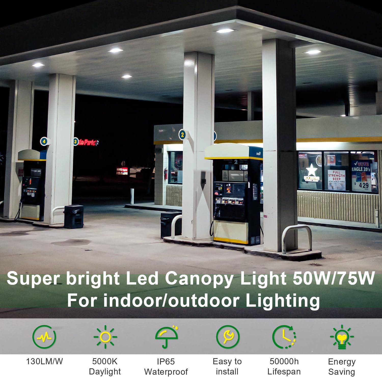 - 🌟【WATERPROOF & Heat Dissipation 】- This amazing LED gas station light is made of die-cast aluminum alloy with dense aluminum plate grooves, which has better heat dissipation and shock and drop resistance. IP65 waterproof rating means it can handle tough weather conditions. The surface is covered with a protective powder coating, which is colorfast, corrosion resistant and high temperature resistant. Prevent electric shock or fire caused by cracking and moisture.