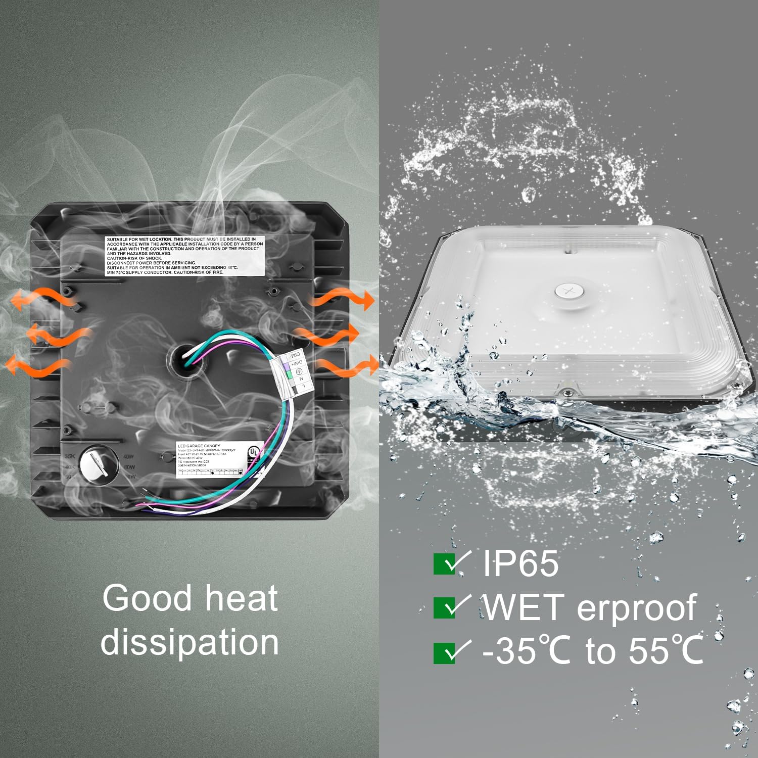 - 🌟【WATERPROOF & Heat Dissipation 】- This amazing LED gas station light is made of die-cast aluminum alloy with dense aluminum plate grooves, which has better heat dissipation and shock and drop resistance. IP65 waterproof rating means it can handle tough weather conditions. The surface is covered with a protective powder coating, which is colorfast, corrosion resistant and high temperature resistant. Prevent electric shock or fire caused by cracking and moisture.