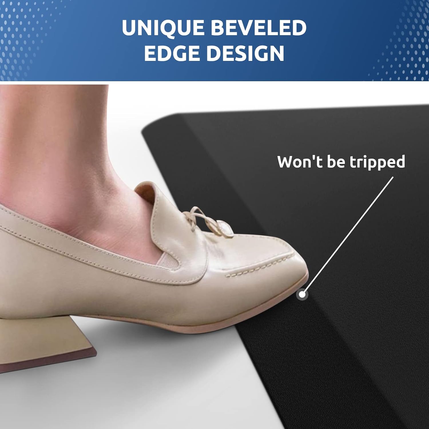 - SAFETY DESIGN: the diamond-shaped design on the bottom of anti fatigue mats keeps the mat in place and prevents slippage; the bevel edge reduces the risk of tripping on the mat