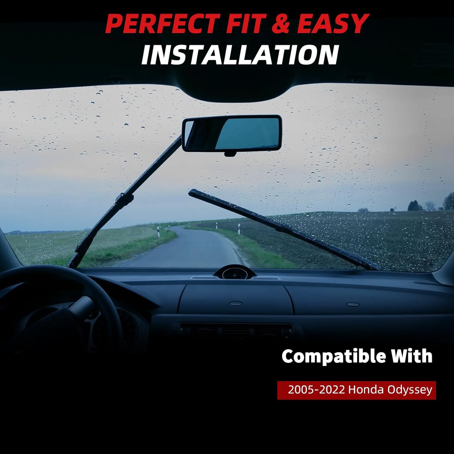 - [26"+22"+16" Perfect Fitment]: Replacement for Honda Odyssey 2005-2022. Our windshield wiper blades are engineered to provide a perfect fit for vehicle models, ensuring optimal performance and coverage