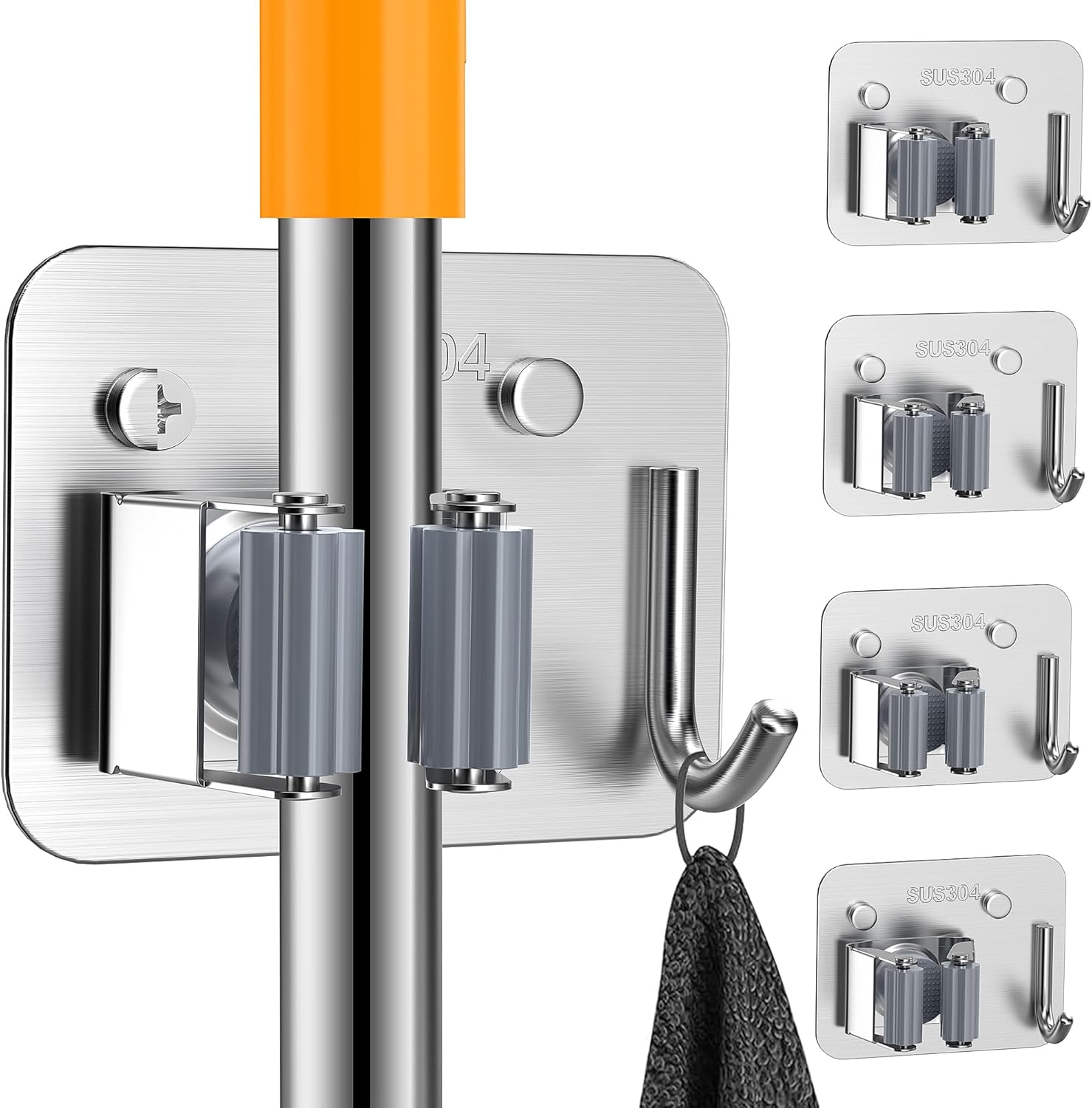 - Economical 4-Pack: This value set includes 4 broom and mop organizer wall hanging and 10 screws. Spread them across multiple rooms or create a dedicated cleaning station. The elegant silver finish complements any décor, offering both functionality and style.