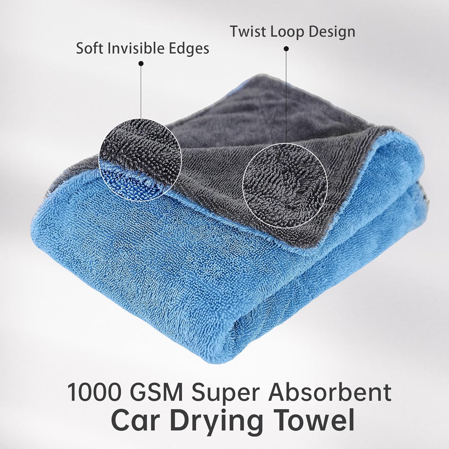 LIVOS Extra Large Car Drying Towel, Twisted Terry Microfiber Towels for Cars, 1000GSM Professional Quick Dry Cleaning Cloth for Car, Scratch-Free, Absorbent Wash Towel, 25" x 36" (Blue&Grey)