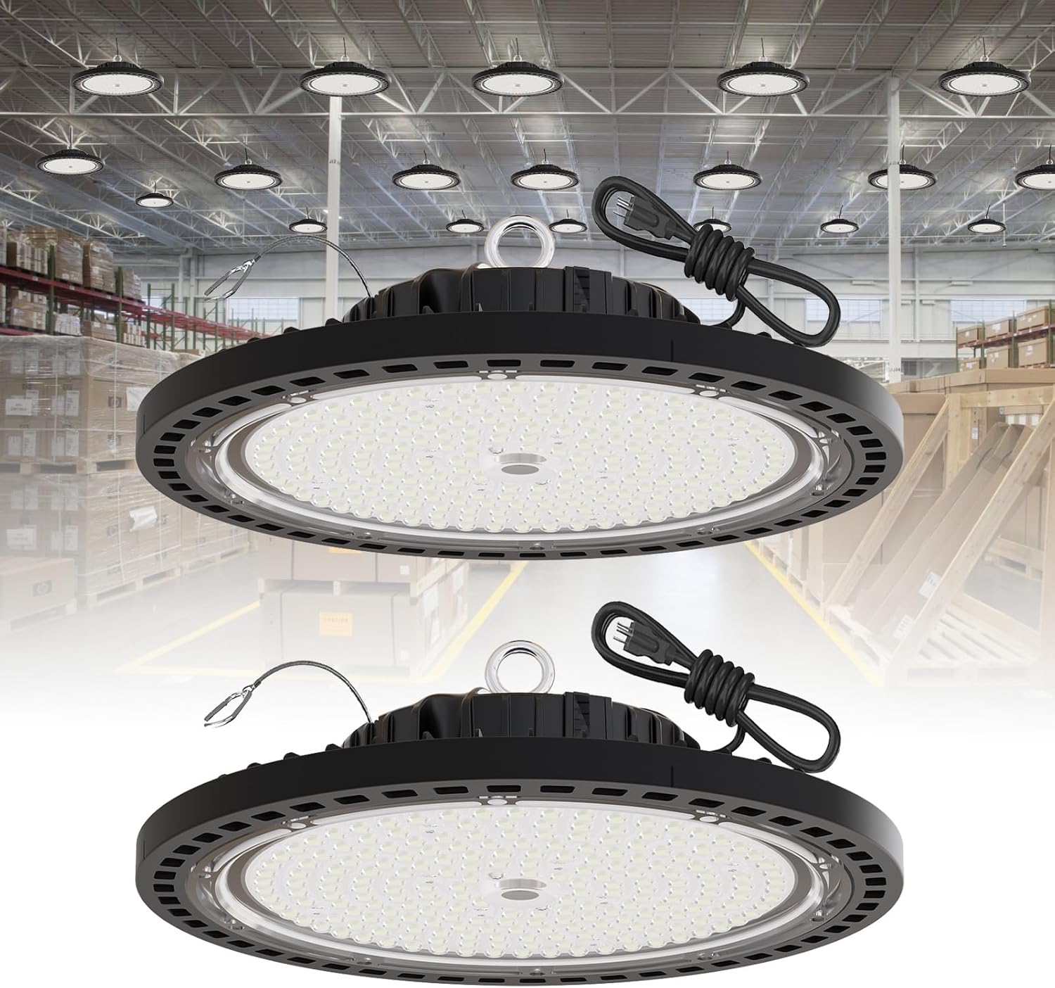 2 Pack UFO LED High Bay Light 200W, 29000 LM, 5000K with 5ft Power Cord, US Plug, Bright LED Shop Light for Basement Commercial Factory Garage Lighting, IP66 Waterproof, AC110-277V, ETL Listded