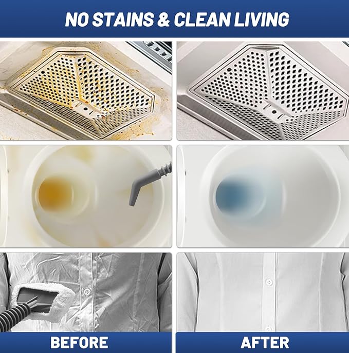 - Multi-Scene Use:13 in 1 multifunction handheld steamer is equipped with multiple accessories to meet your different daily needs, which can be used in different scenarios, for example kitchen, bedroom, living room, car leather goods, bathroom, clothing and so on. Whether it is stubborn grease or dust in the crevices, it can be swept away