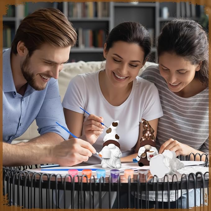 - Inject Fun into Your Life: these coffee gnomes to paint can be displayed in the coffee bar, table, bookshelf, bedroom, living room, fireplace, windowsill, etc., bringing energy and fun to your life, creating a festive atmosphere; These coffee gnomes are an outstanding accent to any coffee bar, kitchen or living space