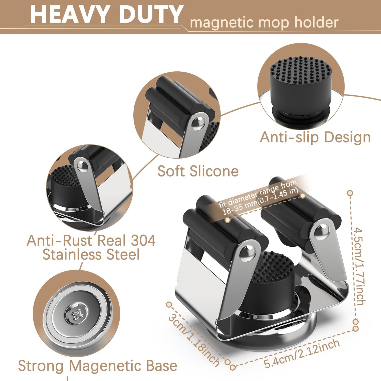 - š§²[SUPERB STABLE ] With broom and mop holder fit diameter range from 18-35 mm(0.7-1.45 in) by lifting the mop handle, the broom organizer wall mount rolling balls automatically adjust to each broom handle's thickness and grips it securely. silicone grip keeps tool handles away from slipping & scratching,magnetic broom holder heavy duty can grip up to 9 pounds cleaning tools and garden tools