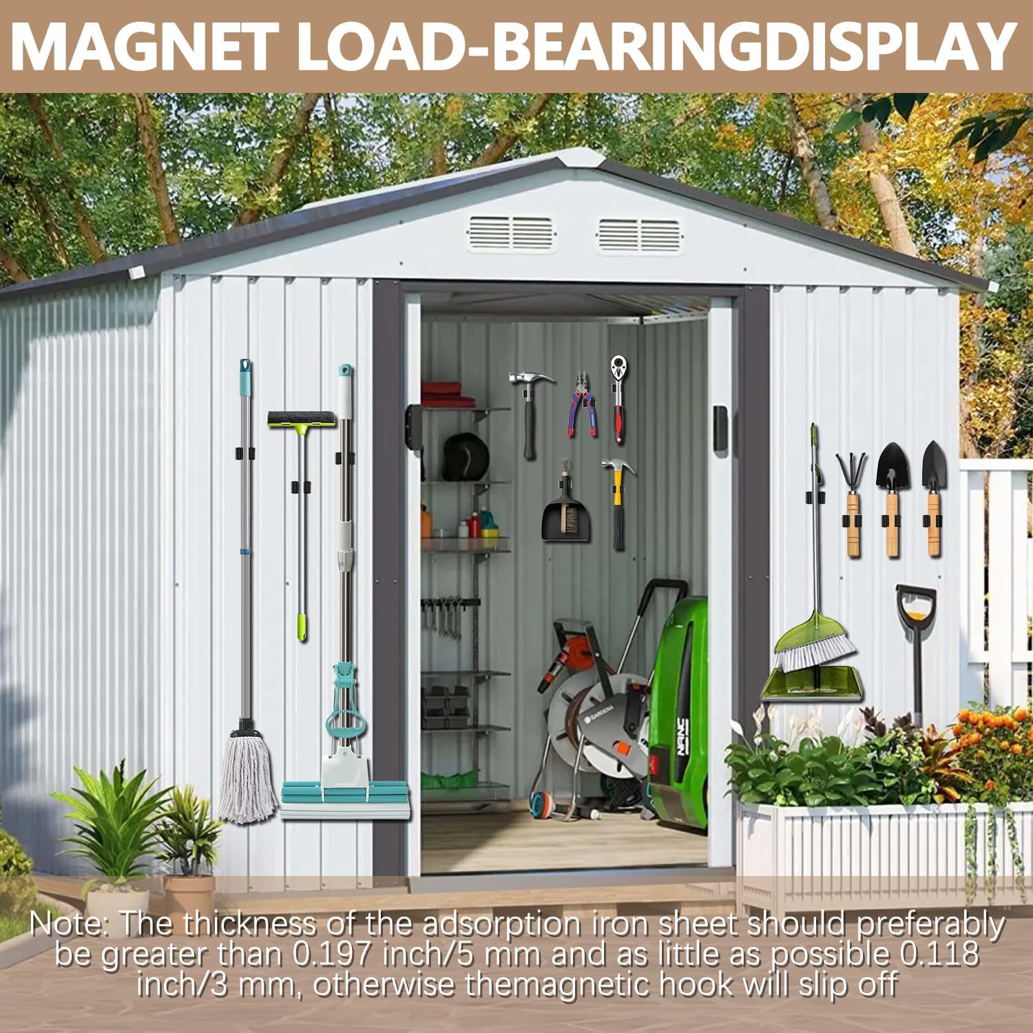 - š§²[INDOORS OR OUTDOORS ] Using mop and broom holder wall mount tidy up your broom, mop, rakes, tools and more! Perfect for the kitchen, closet, garage, office, great for commercial use, and thanks to the waterproof design, this magnet broom even works outdoors or on the shed for your garden tools when you are using the screws.