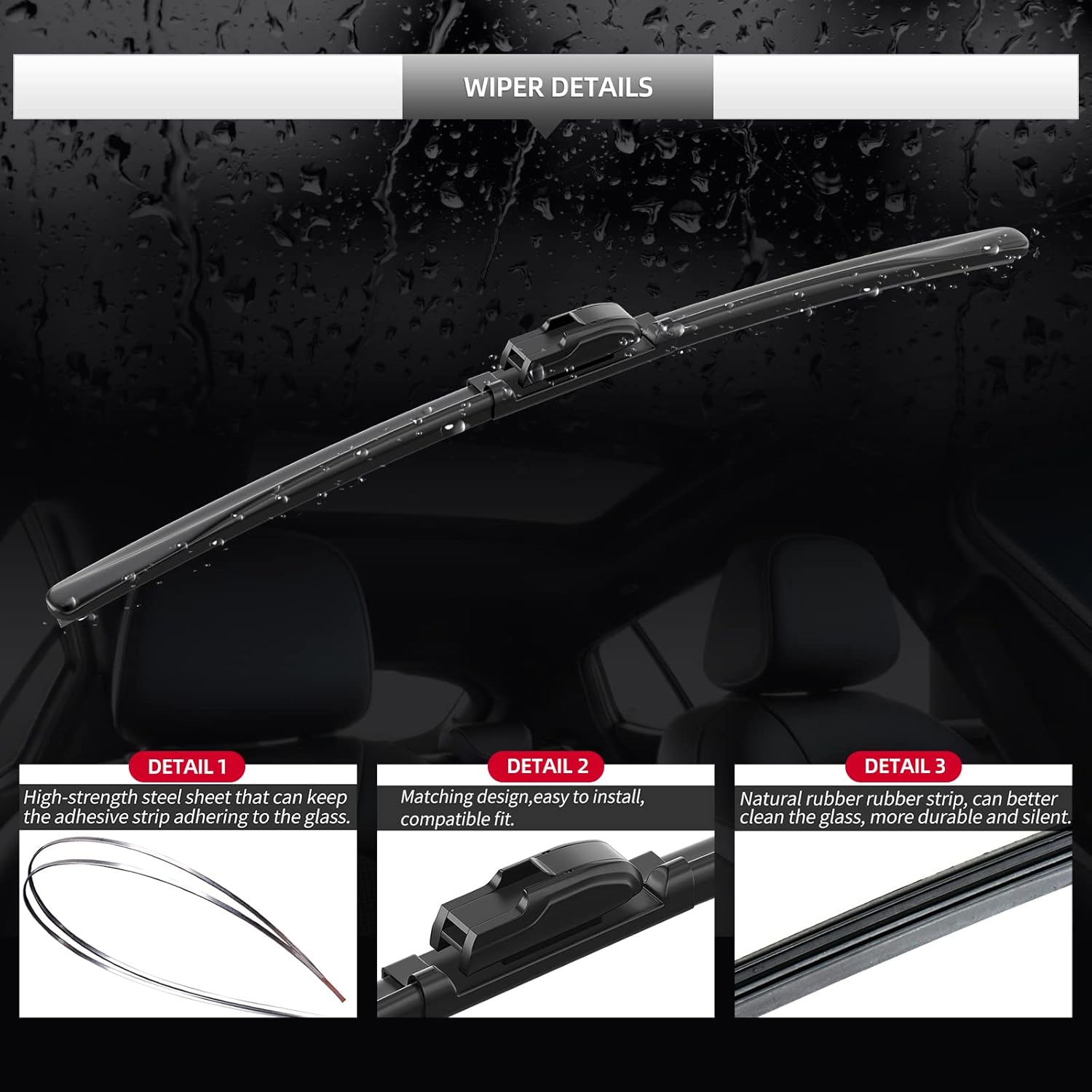 - Packing List: 3 Pieces of front and rear windshield wipers