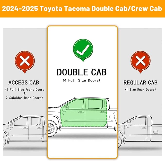 - Vehicle Service Type : 2024-2026 Tacoma Double Cab with 4 Full-Size Doors