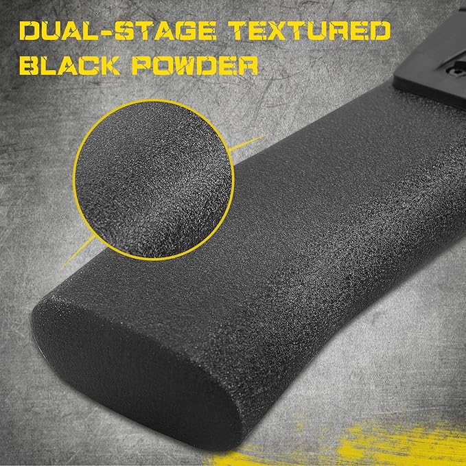 - MATERIAL: Tacoma Step Bars are Made with Heavy-Duty Carbon Steel. The Surface of The Step Bar Is Rust-proof Dual-stage Textured Black Powder. This Is More Rust-proof and Sturdier Than Ordinarily Crafted Steps. Maximum Load Capacity 450LBS.