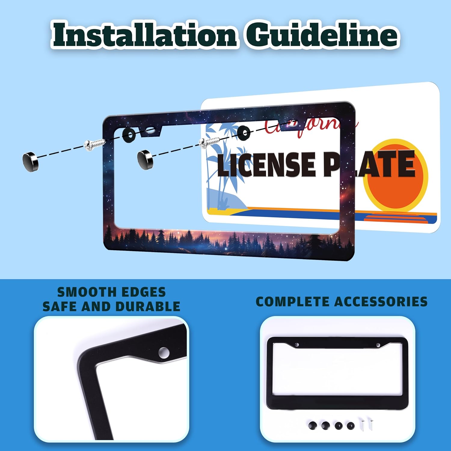 - STAINLESS STEEL LICENSE PLATE: The material is strong and not easy to bend, and can be used for a long time.The multi-layer protective design treatment improves your experience of using the license plate frame.