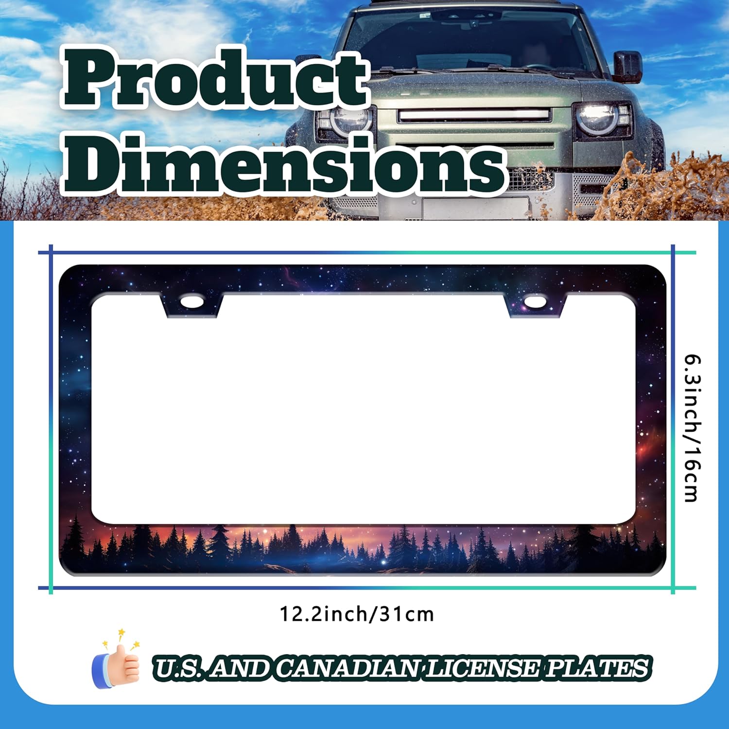 - 6.3 X 12.2 INCHES: Suitable for most standard size U.S. and Canadian license plates, can be applied to front or rear license plates, universal style. Add points to the beauty of your car!