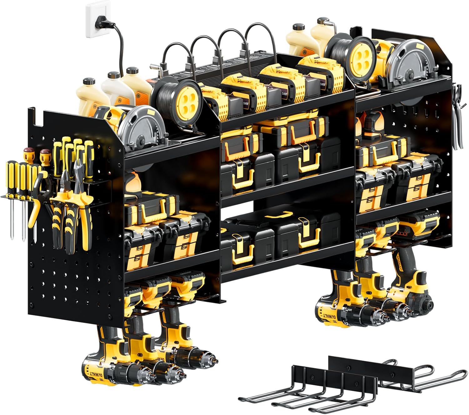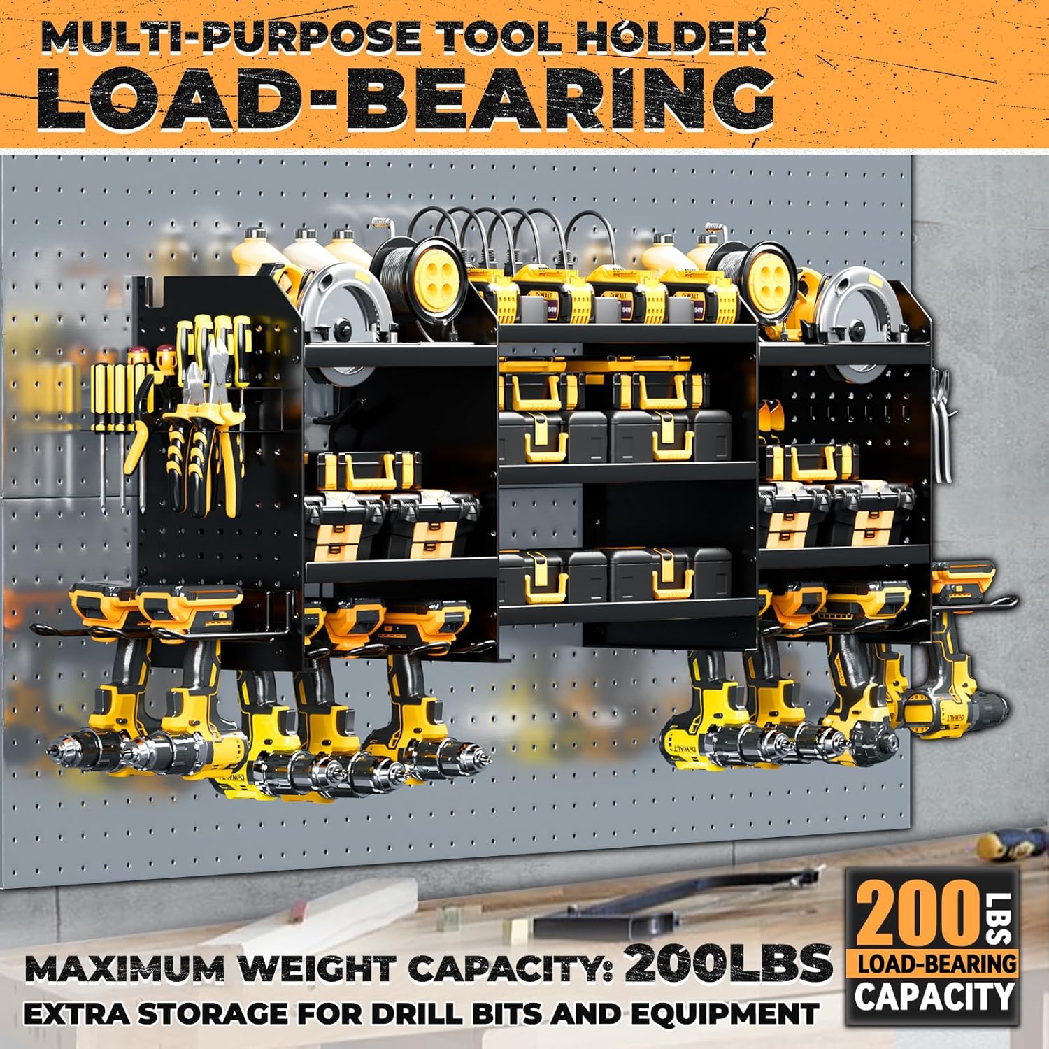 - [Perfect Garage Companion]Utilizing wall-mounted installation, this power tool rack maximizes unused wall space, saving time in tool retrieval. Ideal for garages, homes, workshops, sheds, backyard shops, and more, it offers suspended tool organization and storage.