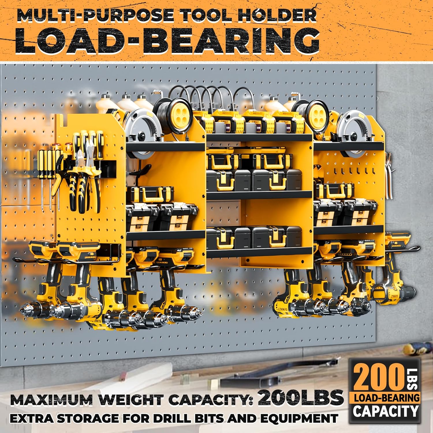 - [Easy Installation]Featuring a removable design and comprehensive installation manual, assembling your cordless drill rack and tool shelf is quick and easy. All mounting uses only one type of screw to make installation easier.Amazing christmas or father's day gift for men.