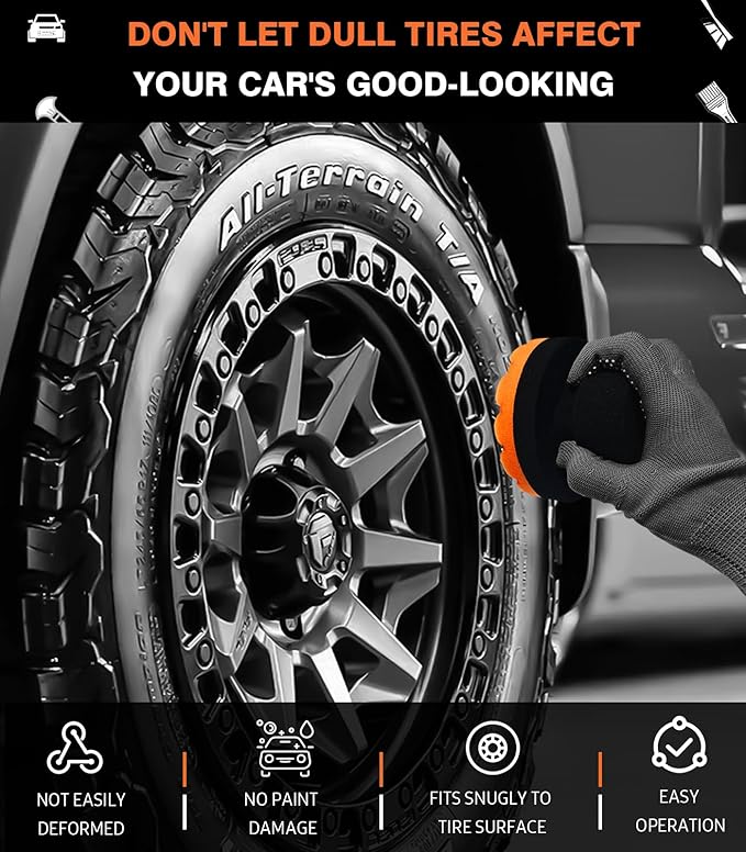 - TIRE SHINE APPLICATOR BRUSH: Car detailing kit designed for comprehensive and deep car care, premium applicator pads is comfortable to use, making the application efficient and material-saving, leaving your tires shiny and bright.