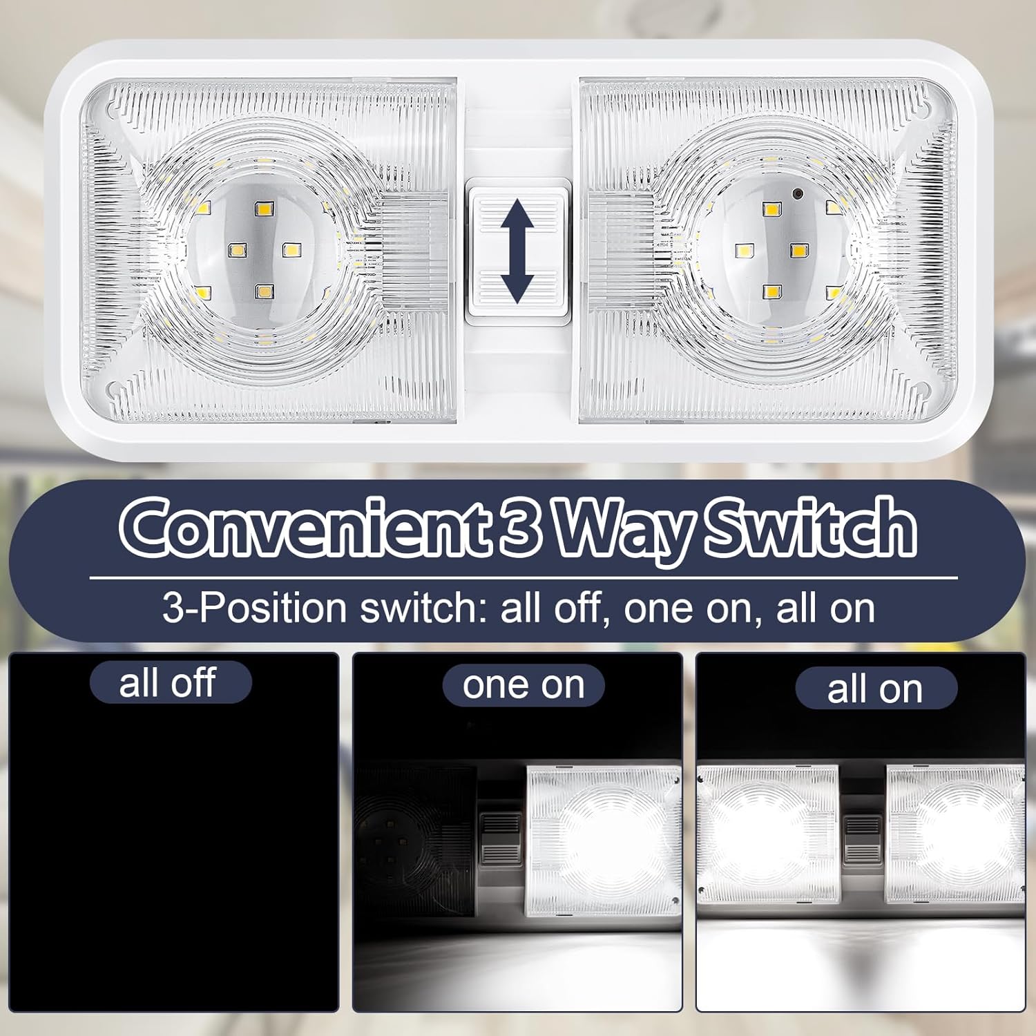 - Versatile Illumination Modes: The camper light comes with a convenient integrated 3-way switch, giving you flexibility with two lighting modes. Simply slide the switch up or down to control each side of the lights separately or together, so you can adjust to any lighting situation hassle-free.