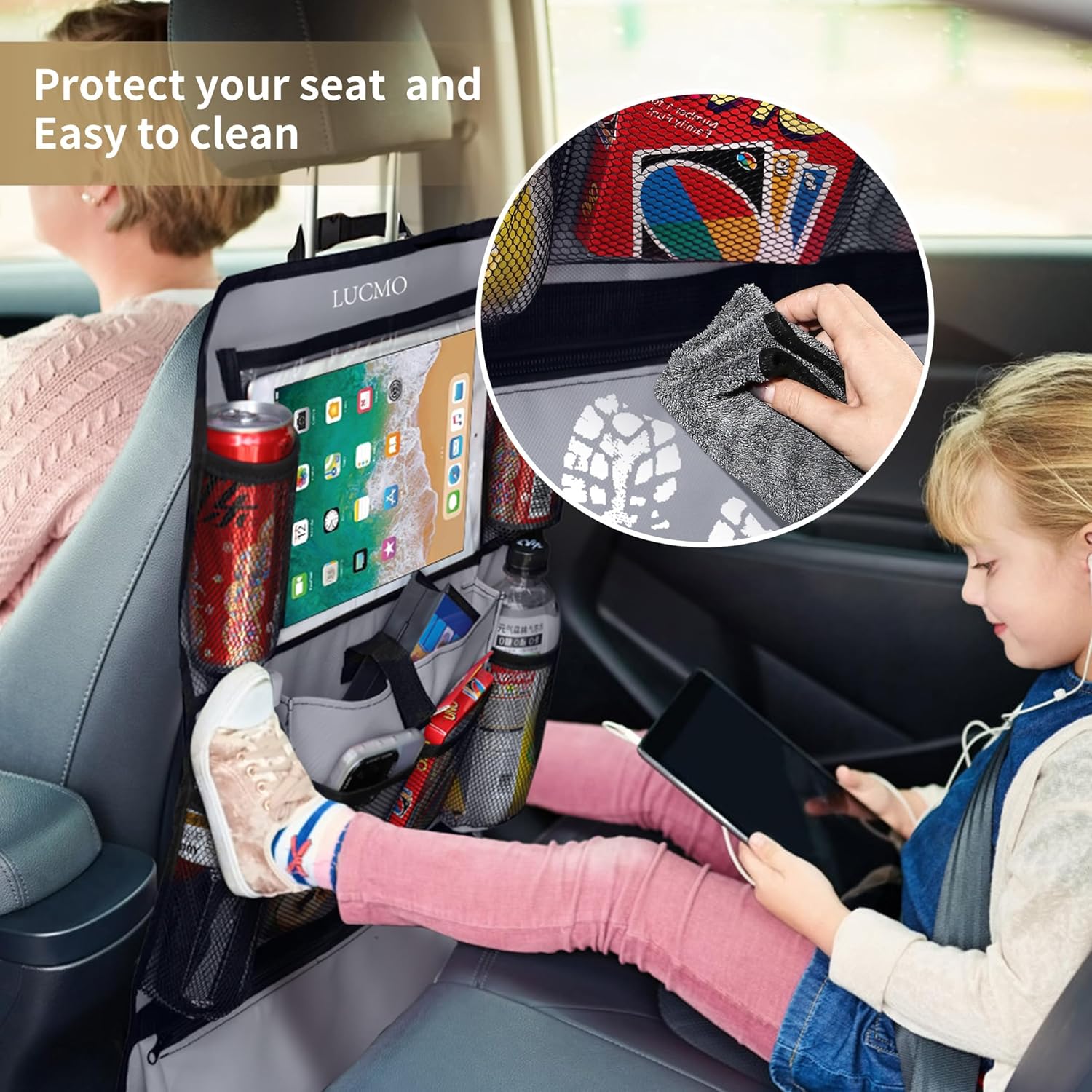 - 【Clear Tablet Holder】LUCMO car backseat organizer with a clear tablet holder for kids,make your children enjoy more fun during family travel.