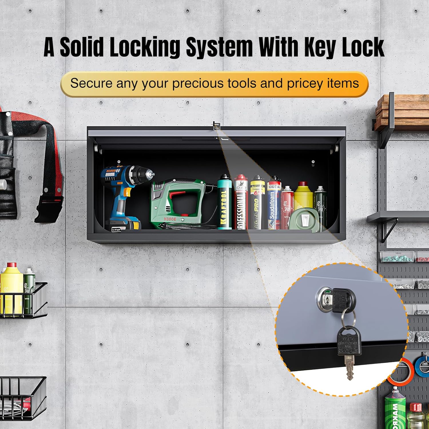 - ✅➤【A solid locking system】: This wall storage cabinet comes with a lock with 2 keys, which is a plus to secure any important and pricey items that you are storing. The lockable feature is the cherry on top, ensuring your precious tools are safe from pesky tool gnomes.