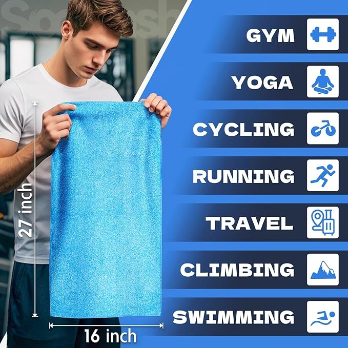 - 【MATCH MULTIPLE COLORS】: black, blue and teal. Three pack. They are suitable for indoor and outdoor activities such as camping, swimming, yoga, gym, hiking ETC. 16 x 27 inches is perfect for your fitness and after sports for showering.