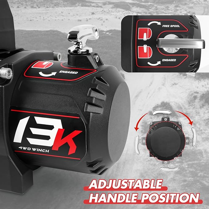 - Winch load capacity: 13,000 lbs; 4.5 HP; Gear ratio: 265:1; Rope Size: 3/8inch*78ft; With 3-stage planetary gear system, strong pulling force; Unique design is perfect for your Wrangler, SUV, truck and trailer, making it more attractive and cool. The winch comes with lifetime technical support and one-year warranty.