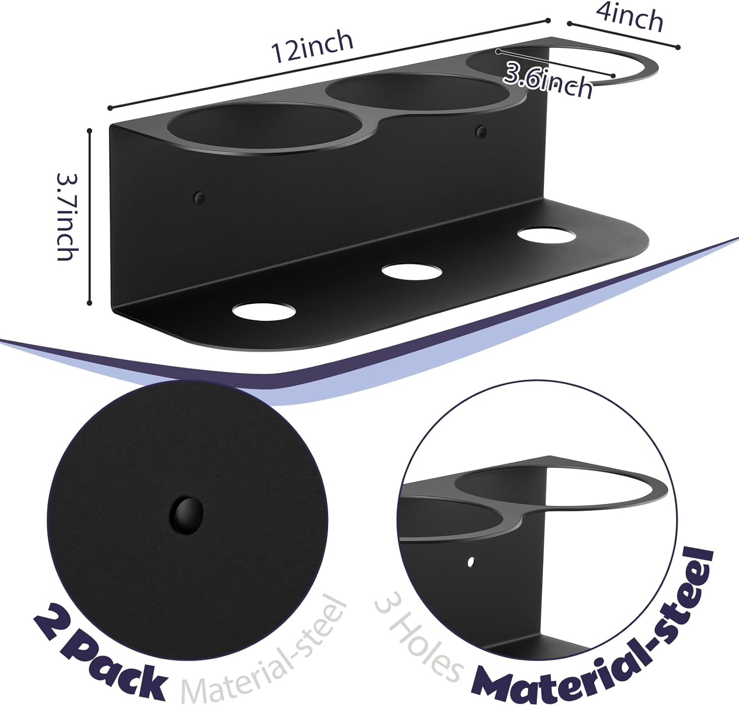 Therwen 2 Pcs 3 Holes All Purpose Steel Spray Bottle Holder Heavy Duty Can Holder Rack Organizer Easy Install Wall Mount Paint Spray Bottle Organizer Storage Rack for Garage Home Workspace(Black)