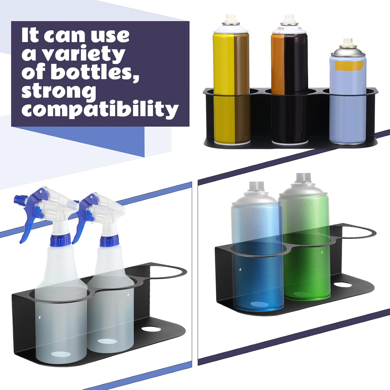 - Convenient Package: the package includes 2 spray bottle racks, giving customers the option to store up to 6 bottles at once; With additional holders, you can organize your workspace even more efficiently, and always have your cleaning supplies within easy reach