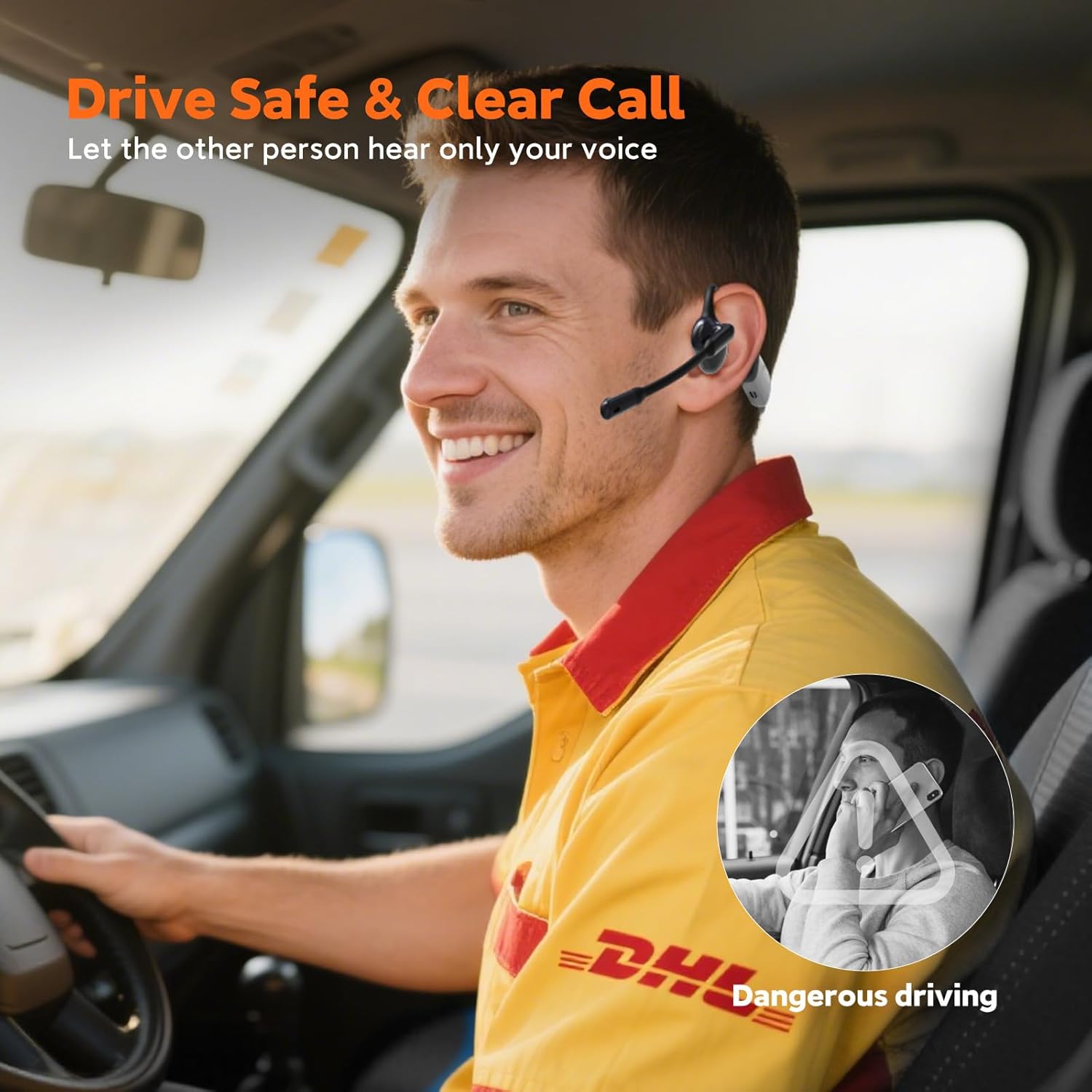 - 【AI Noise Cancellation Microphone】: Powered by advanced AI algorithms, our wireless headset with microphone delivers exceptional noise cancellation with minimal distortion, effectively filtering out up to 50dB of background noise for call while simultaneously and clearly isolating your voice from surrounding conversations. Whether you're working at the noisy office or communicating in remote meetings, this noise cancelling microphone headset will make every communication clear and efficient.