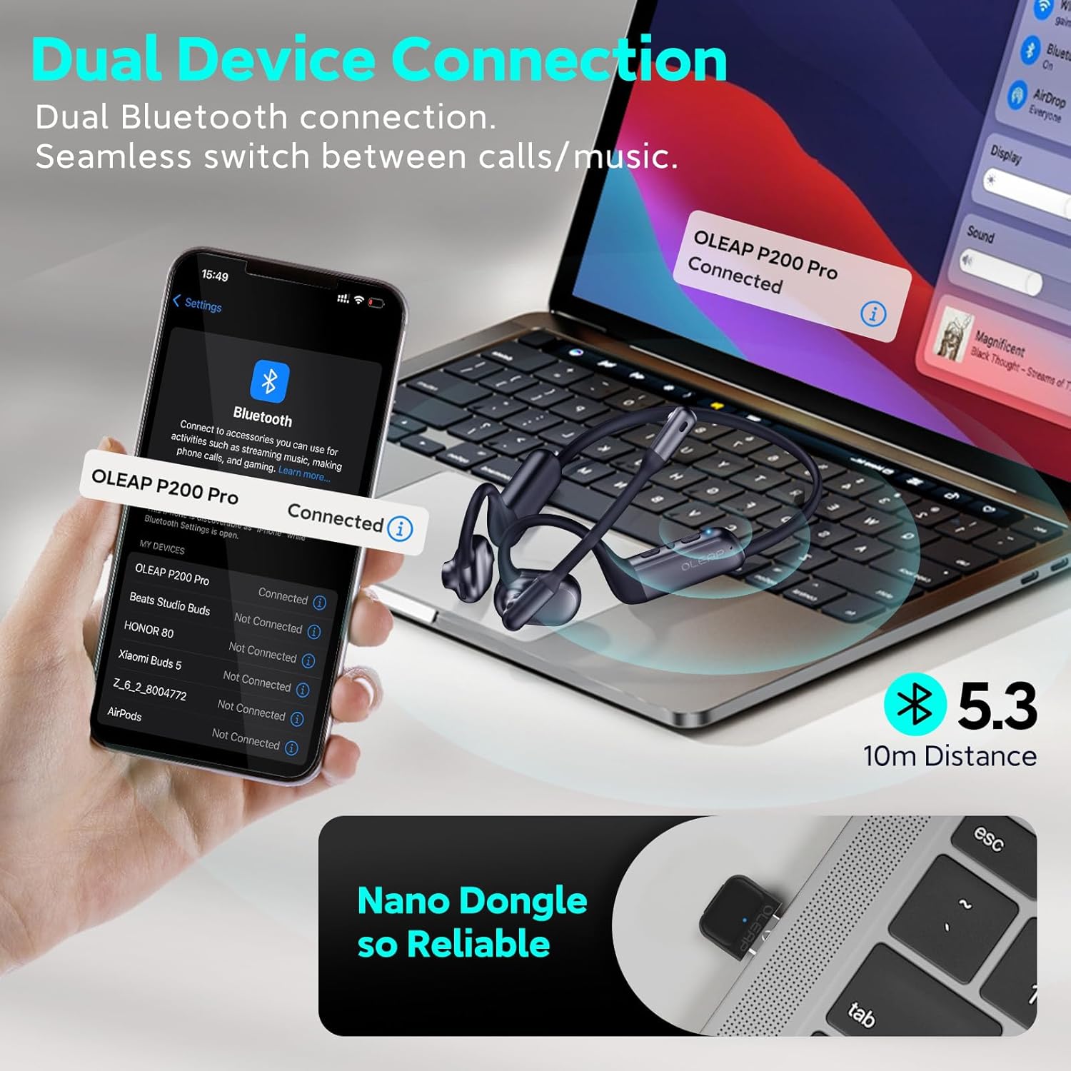 - 【Effortless Multi-Device Connectivity】: With Bluetooth 5.3, our bluetooth headset with microphone delivers a stable connection up to 10 meters with our USB-C dongle. It stays seamlessly staying linked to both your phone and laptop simultaneously. This means you can pause a video on your PC and answer a call from your phone without missing a beat, keeping you focused and productive all day long.
