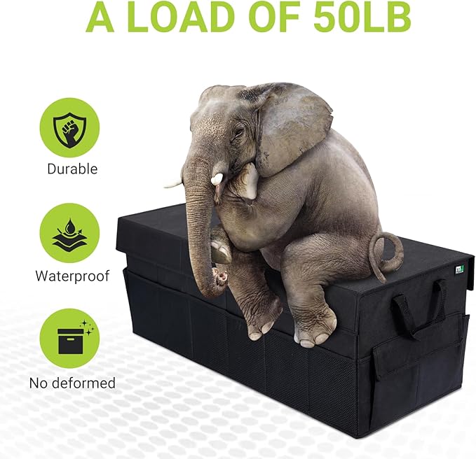 - 【Collapsible Trunk Organizer】- The foldable trunk organizer for SUVs is easy to use. You can place it not only in the trunk but also in your vehicle's front or rear seats or center. When you don't need to use it, you can fold it up for easy carrying and storage. The detachable lid keeps your goods out of sight for added security