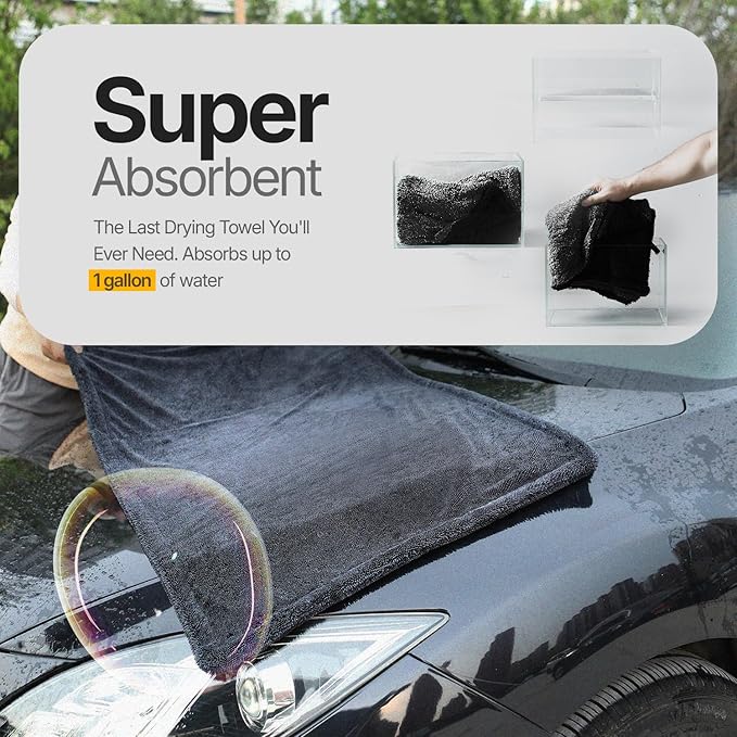 - 2X DRYING EFFECIENCY: Our dual-sided drying towel absorbs up to 9lbs of water, drastically cutting drying time and saving effort. Achieve a streak-free shine in one swipe and clean your car 2x faster