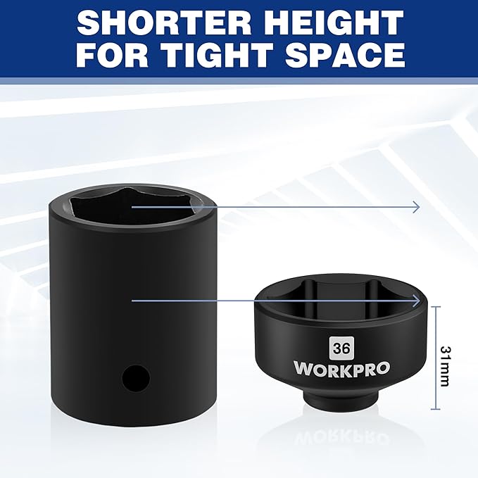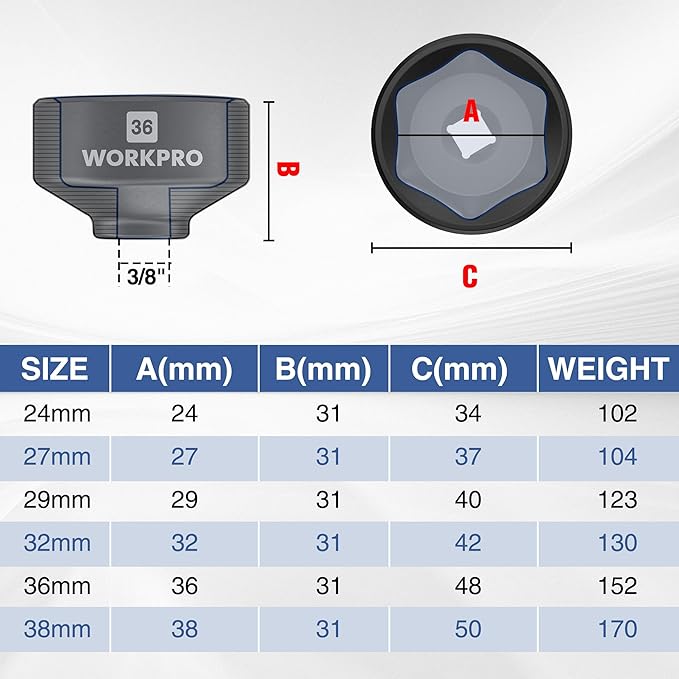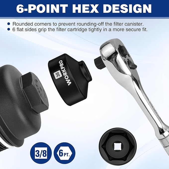 WORKPRO 24-38mm (6-Piece) Oil Filter Socket Wrench, Oil Filter Removal Tool, Oil Filter Change Set, Ideal for Some Ford F250, BMW, Mini, Volvo, Audi, VW, Porsche Vehicles