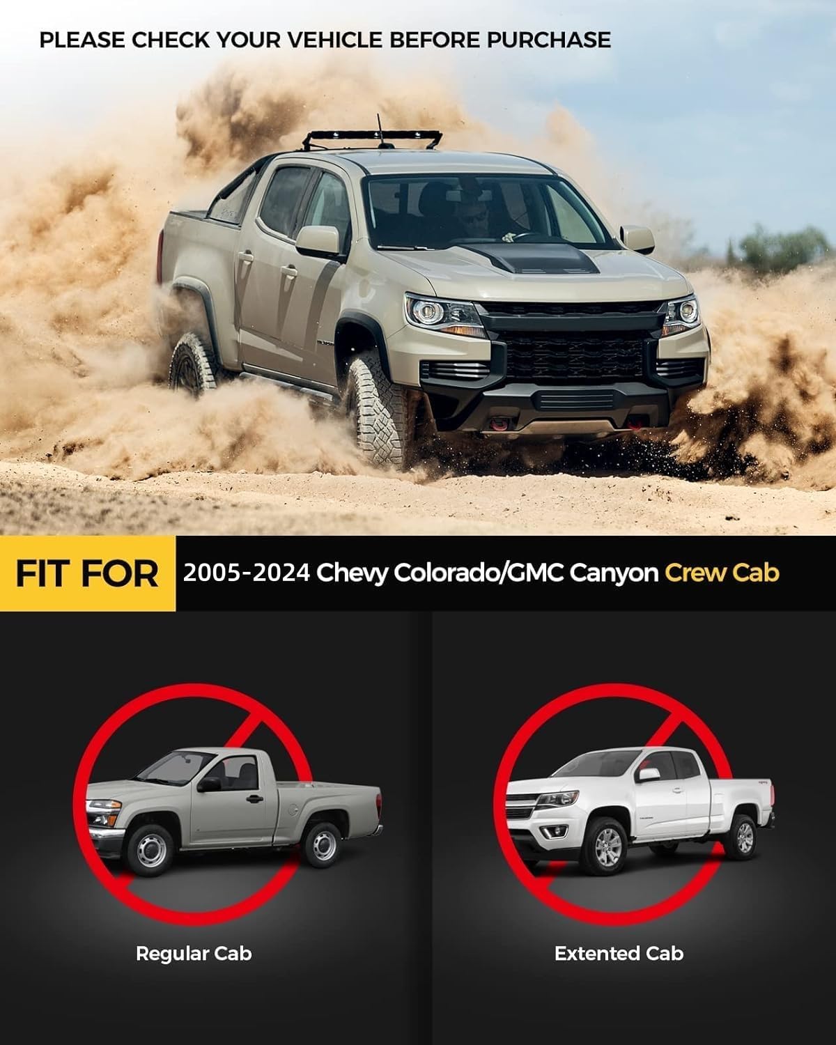 - FITS PERFECTLY: KYX Running Boards & Side Steps Perfectly Fit for 2015-2024 Chevy Colorado/Canyon Crew Cab and Dress up your vehicle. (Please feel free to contact us if you are not sure if this item fits your vehicle.)