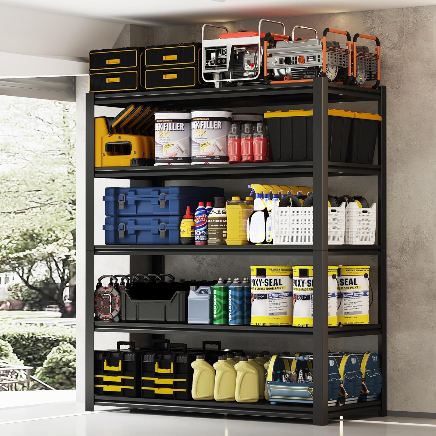 - Adjustable 5-Tier Design: The versatile design of our storage shelves allows for customizable storage solutions. With five adjustable tiers, you can configure the shelving unit to accommodate different-sized items, providing flexibility for your storage needs.
