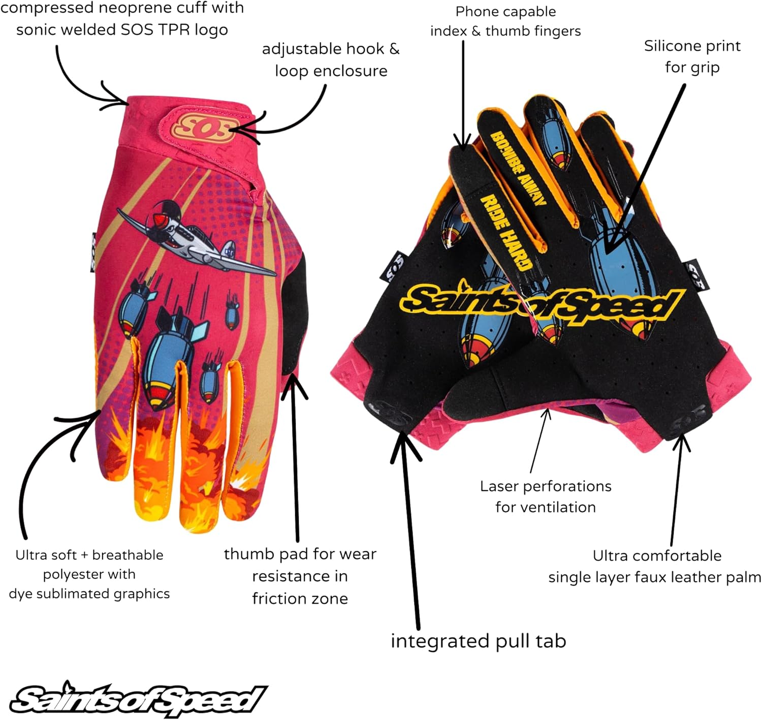Saints of Speed Dirt Bike Gloves – Motocross, Mountain Bike, Motorcycle, BMX, Jetski, Sim, Karting, Airsoft, Paintball, Driving & Racing Bike Gloves + Phone & Touch Screen Capable