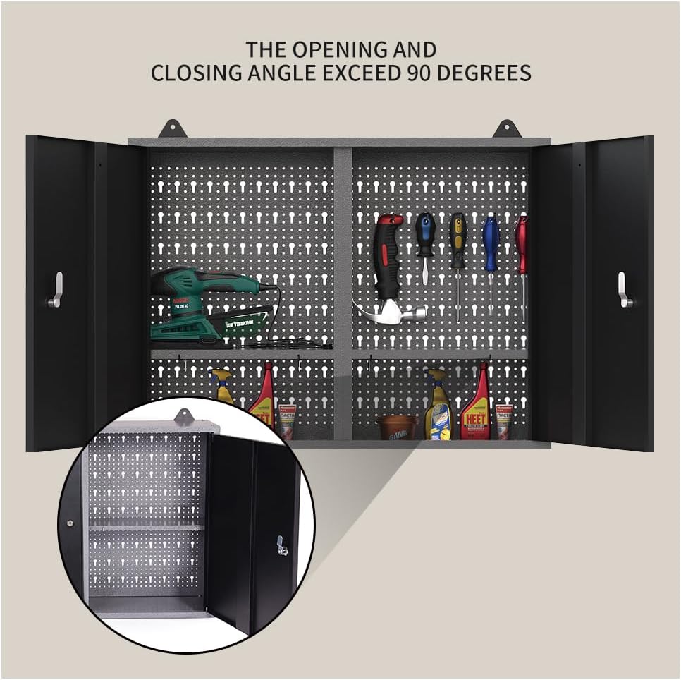 JZD Steel Garage Wall Mounted Tool Cabinet, Black & Grey