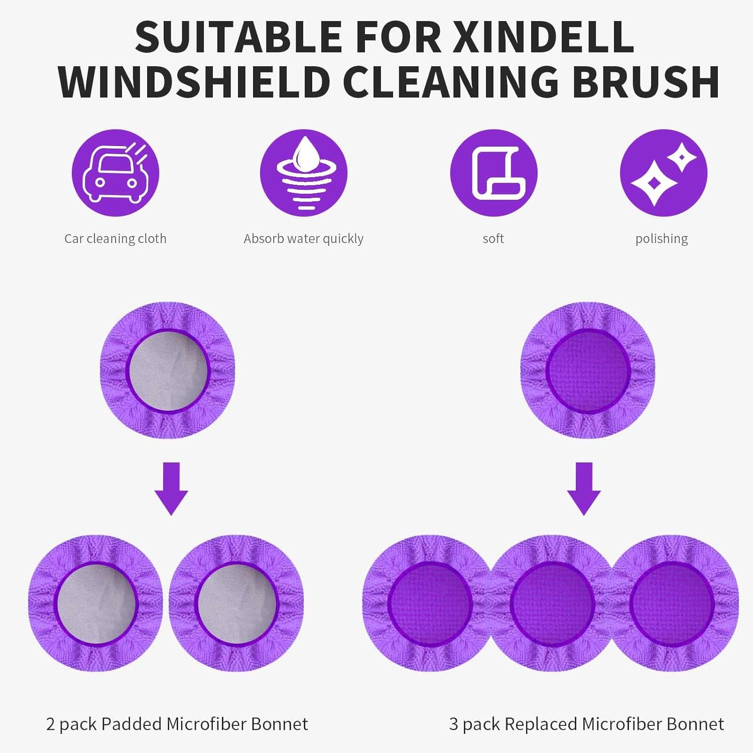 - ▲Durable Replacement Pads: The XINDELL 5-pack includes 2 heavy-duty thickened microfiber pads and 3 general-purpose pads in green, red, and purple. These washable and reusable pads are perfect for car windshield cleaning and other auto glass surfaces, ensuring long-lasting performance.